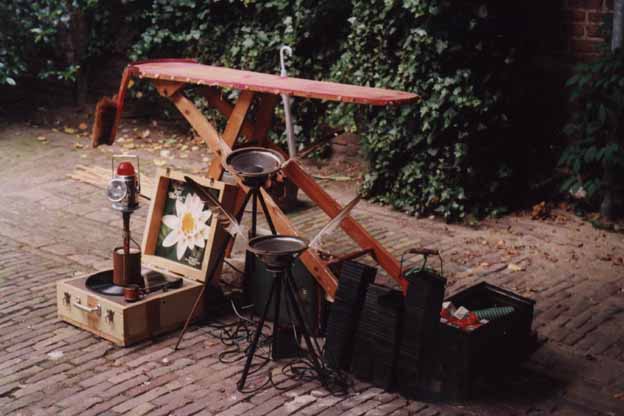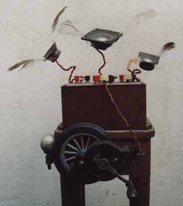 Light swings around along with a screeqy sound from a needle in a tincan